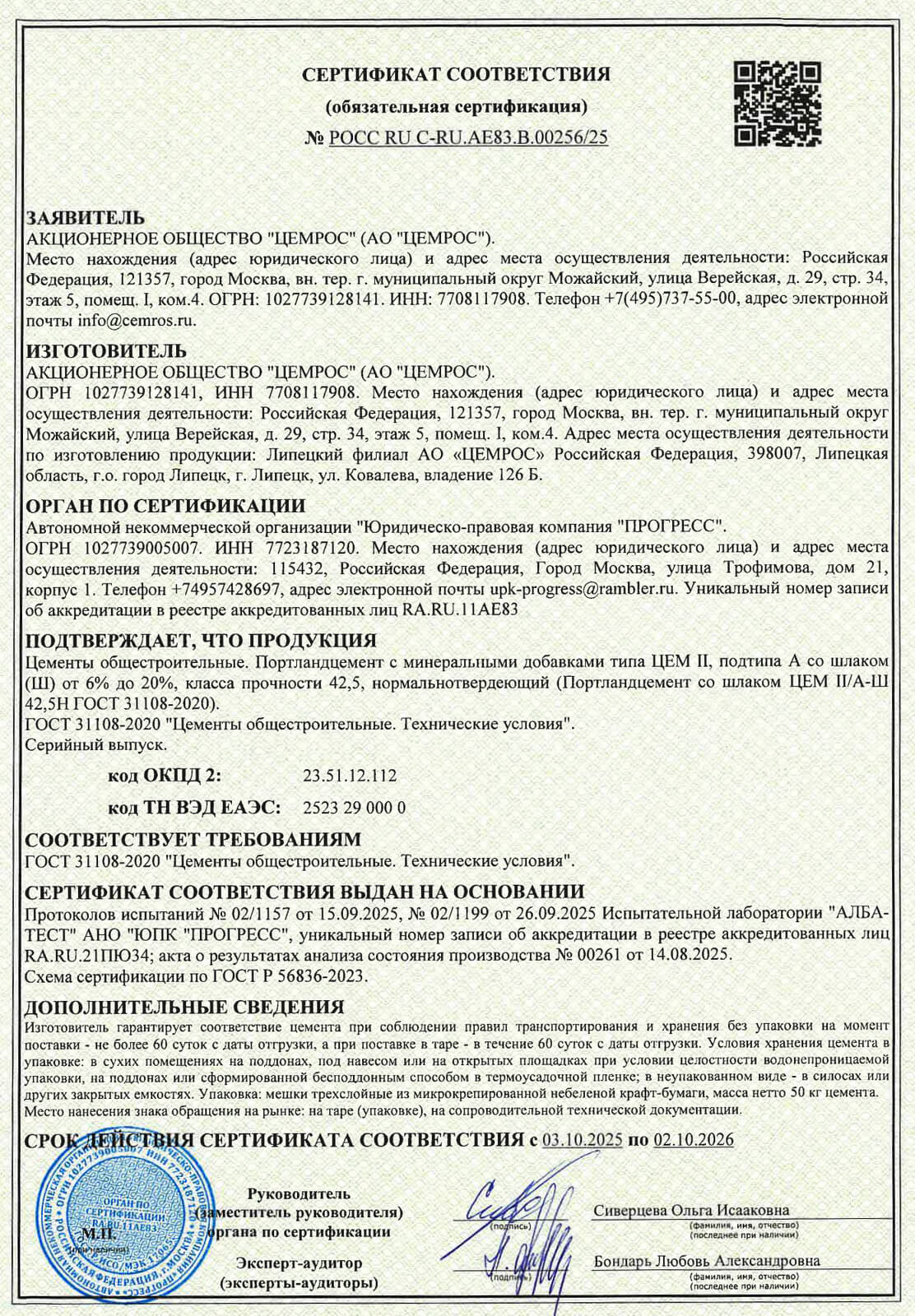 Обладает повышенной конечной прочностью и долговечностью. Применяется для производства товарного бетона, мелкоштучных изделий и простых сухих смесей.