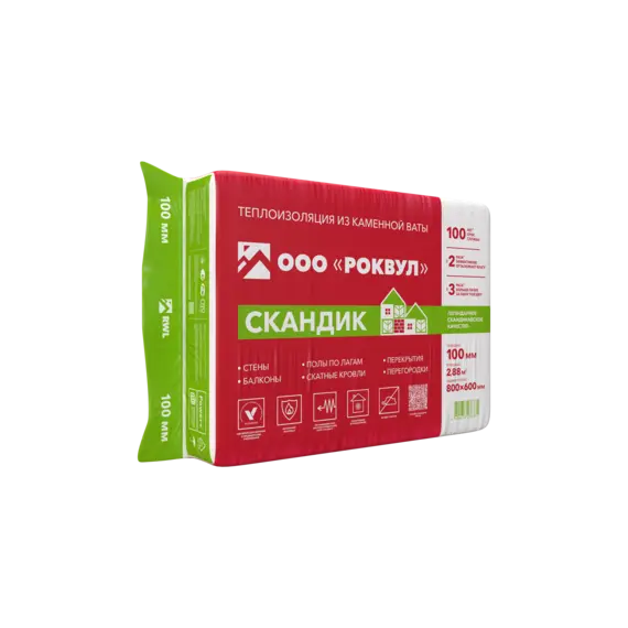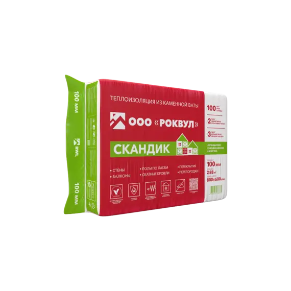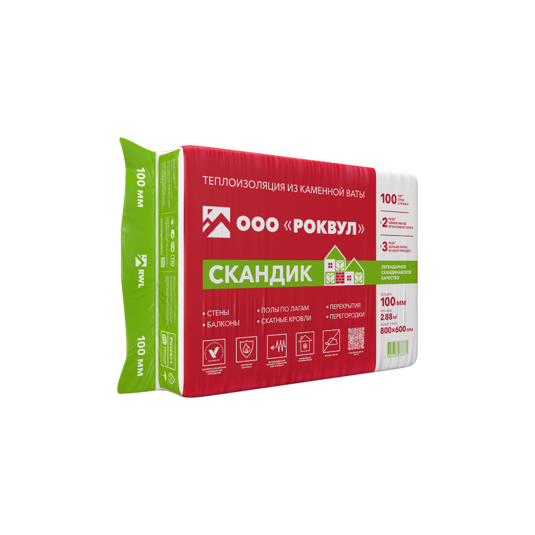 Утеплитель Роквул Лайт Баттс Скандик 100х600х800мм 6плит 2,88м2