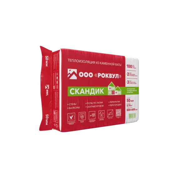 Утеплитель Роквул Лайт Баттс Скандик 50х600х800мм 12плит 5,76м2